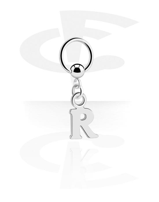 Ball closure ring (acciaio chirurgico, argento, finitura lucida) con ciondolo con lettera"r"