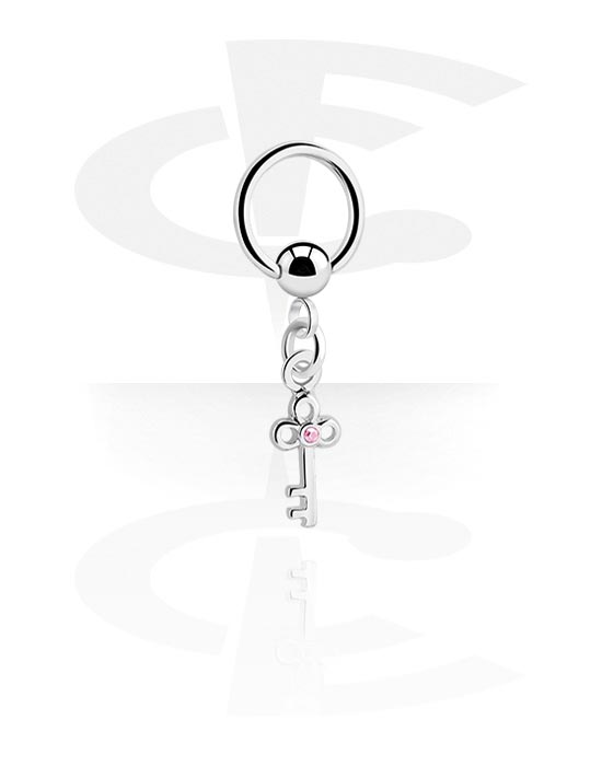 Ball closure ring (acciaio chirurgico, argento, finitura lucida) con ciondolo chiave e brillantino