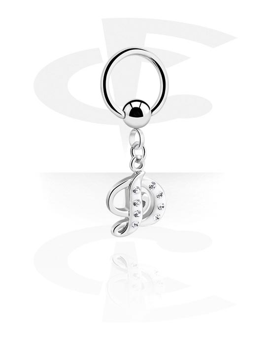 Ball closure ring (acciaio chirurgico, argento, finitura lucida) con ciondolo con lettera "d" e cristallini