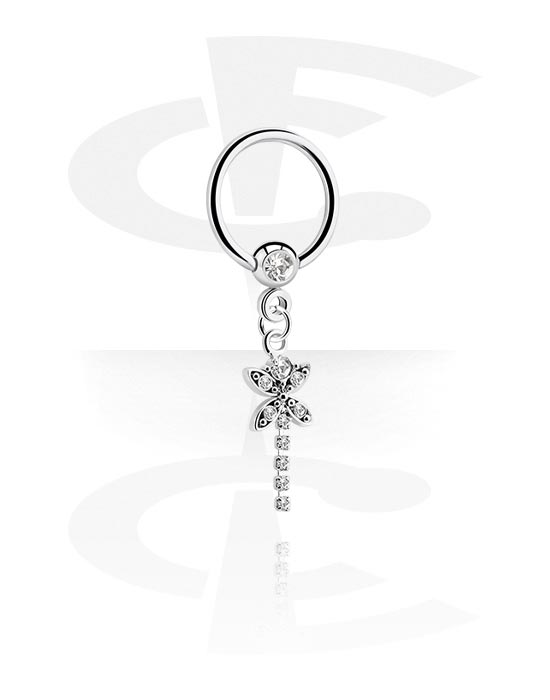 Ball closure ring (acciaio chirurgico, argento, finitura lucida) con ciondolo e cristallini