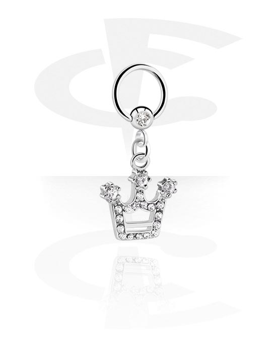 Ball closure ring (acciaio chirurgico, argento, finitura lucida) con ciondolo con corona e cristallini