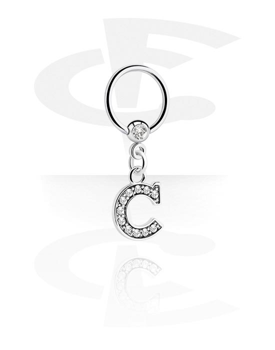 Ball closure ring (acciaio chirurgico, argento, finitura lucida) con ciondolo con lettera "c"