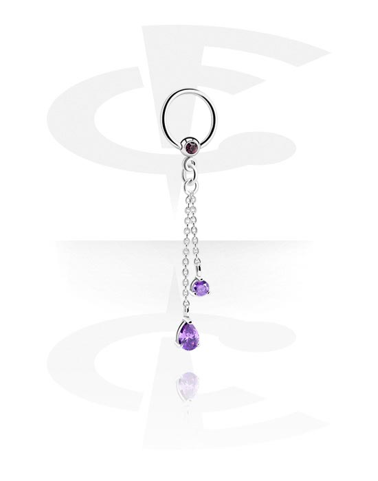 Ball closure ring (acciaio chirurgico, argento, finitura lucida) con brillantino e ciondolo