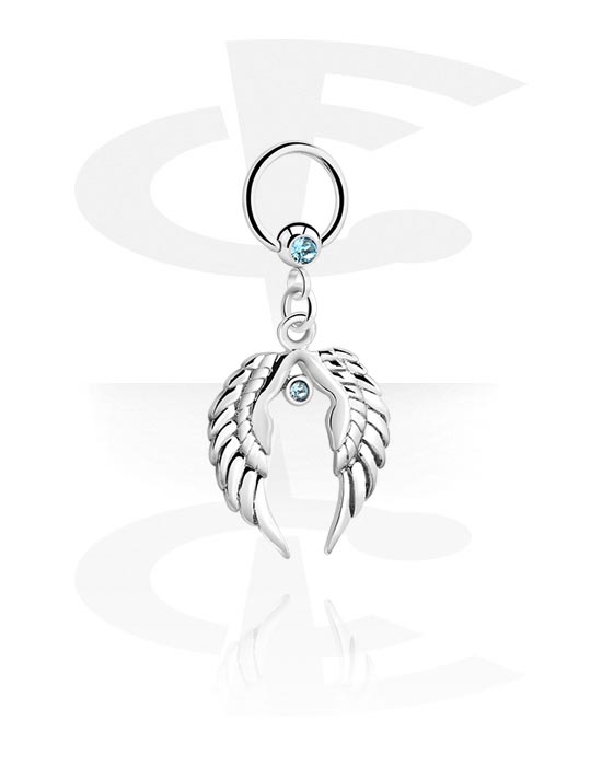 Ball closure ring (acciaio chirurgico, argento, finitura lucida) con brillantino e ciondolo con ali