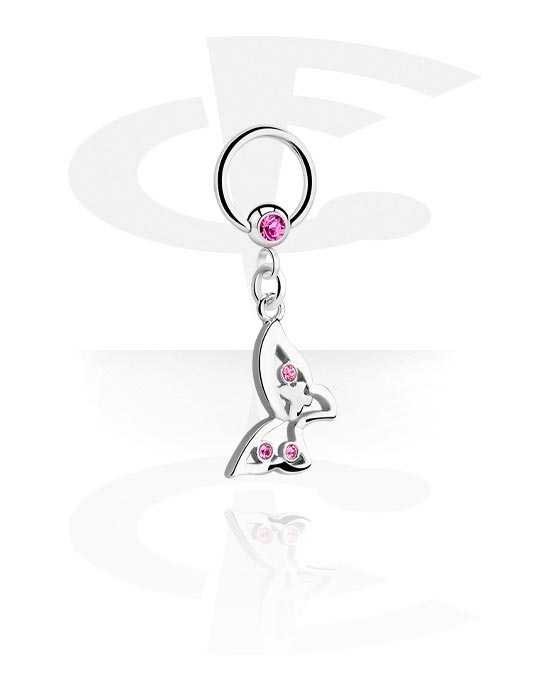 Ball closure ring (acciaio chirurgico, argento, finitura lucida) con ciondolo a farfalla e cristallini