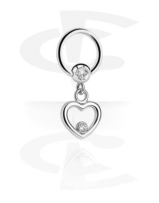 Ball closure ring (acciaio chirurgico, argento, finitura lucida) con brillantino e ciondolo a cuore