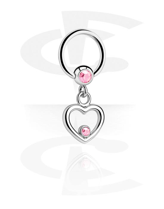 Ball closure ring (acciaio chirurgico, argento, finitura lucida) con brillantino e ciondolo a cuore