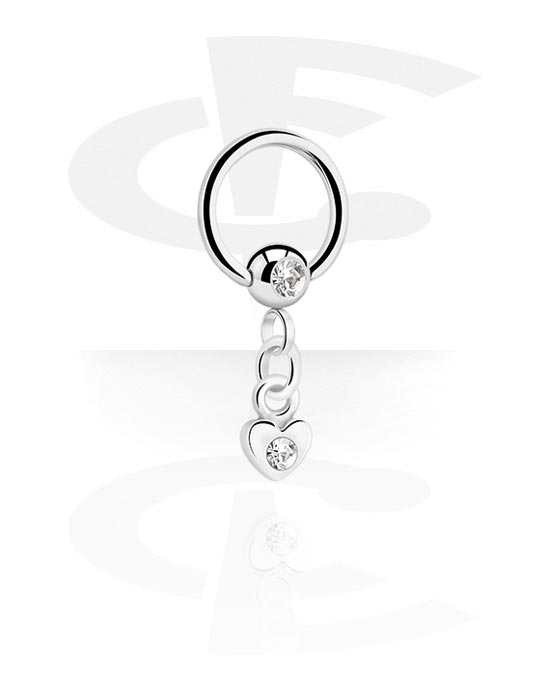Ball closure ring (acciaio chirurgico, argento, finitura lucida) con brillantino e ciondolo a cuore