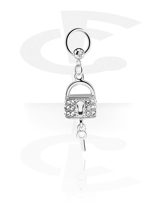Ball closure ring (acciaio chirurgico, argento, finitura lucida) con brillantino e ciondolo lucchetto