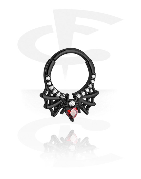 Multi-purpose clicker (acciaio chirurgico, nero, finitura lucida) con design ragnatela e cristallini