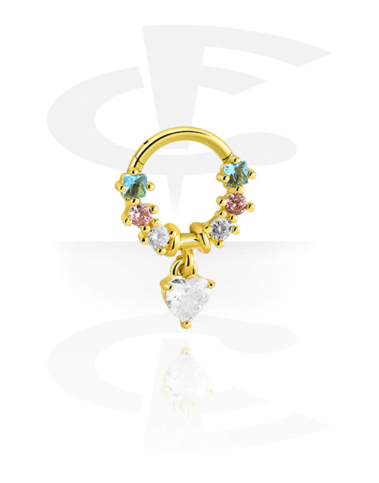 Multi-purpose clicker (acciaio chirurgico, oro, finitura lucida) con ciondolo a cuore e cristallini