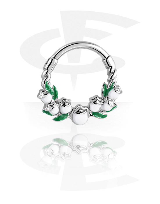 Multi-purpose clicker (acciaio chirurgico, argento, finitura lucida) con motivo a fiore