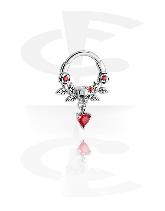 Multi-purpose clicker (acciaio chirurgico, argento, finitura lucida) con accessorio a teschio e cristallini