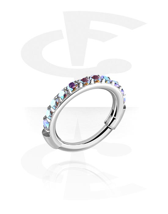 Questo segment ring a cerniera è realizzato in acciaio chirurgico di alta qualità ed è quasi completamente coperto da meravigliose e scintillanti pietre di cristallo che rendono questo piercing un vero capolavoro.