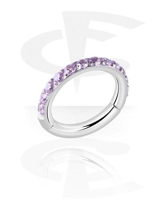 Questo segment ring a cerniera è realizzato in acciaio chirurgico di alta qualità ed è quasi completamente coperto da meravigliose e scintillanti pietre di cristallo che rendono questo piercing un vero capolavoro.