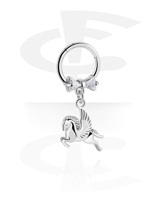 Segment ring (acciaio chirurgico, argento, finitura lucida) con fiocco e ciondolo cavallo