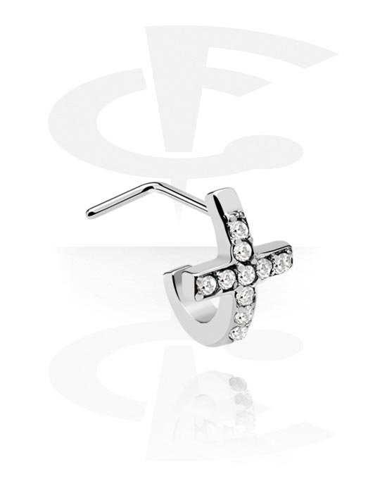 Chiodino per naso ad L (acciaio chirurgico, argento, finitura lucida) con cristallini