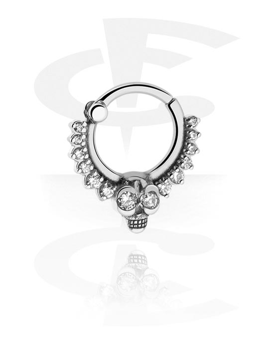 Septum clicker (acciaio chirurgico, argento, finitura lucida) con teschi e cristallini