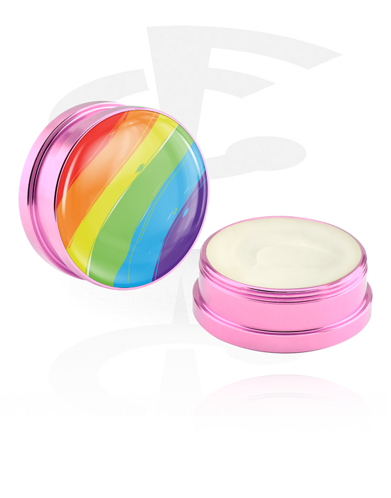 High quality jewelled container in a plug-like look, made of anodised aluminium. Available in various colours and designs. The deodorising conditioning creme takes care of your stretched earlobes and prevents bad smells. After a quick and easy application, the natural ingredients provide optimal skincare and nice smells.