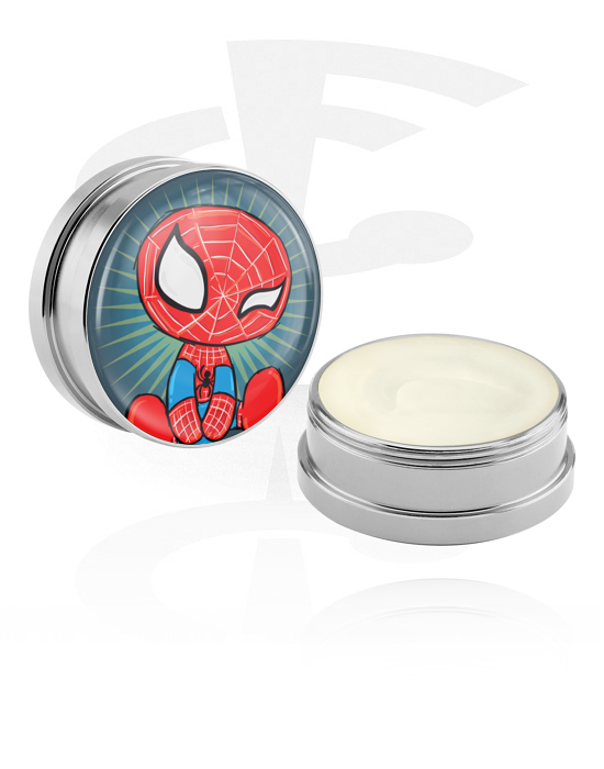 High quality jewelled container in a plug-like look, made of anodised aluminium. Available in various colours and designs. The deodorising conditioning creme takes care of your stretched earlobes and prevents bad smells. After a quick and easy application, the natural ingredients provide optimal skincare and nice smells.