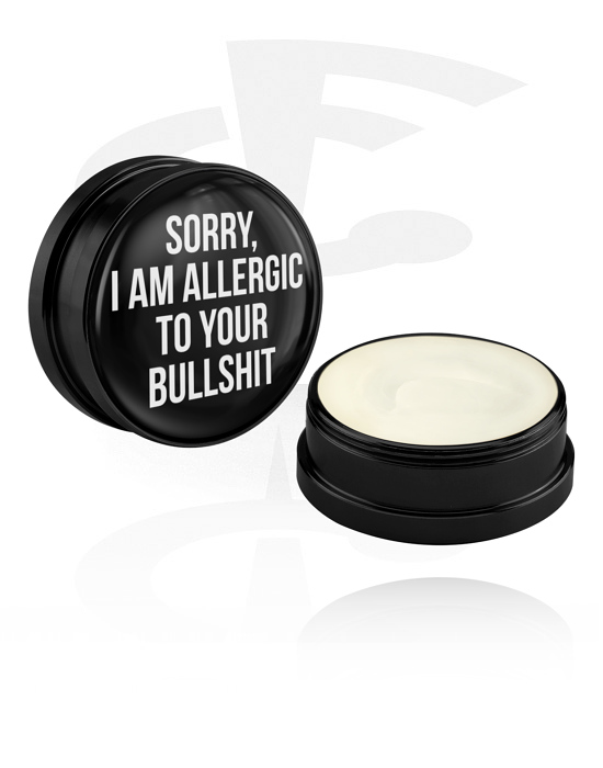 Balsamerende krem og deodorant for piercinger med "Sorry, I am allergic to your bullshit" skrift