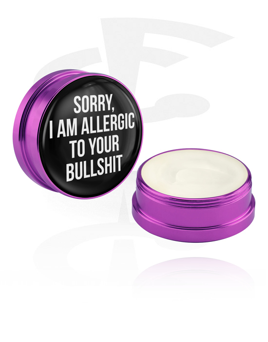 Balsamerende krem og deodorant for piercinger med "Sorry, I am allergic to your bullshit" skrift