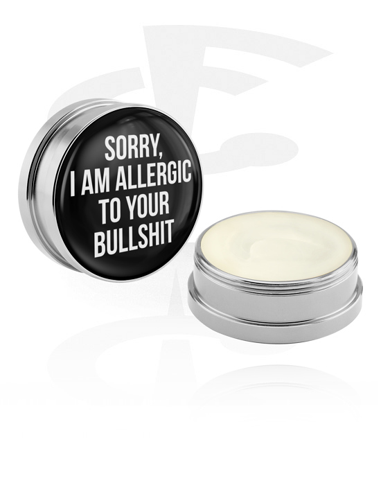 Balsamerende krem og deodorant for piercinger med "Sorry, I am allergic to your bullshit" skrift