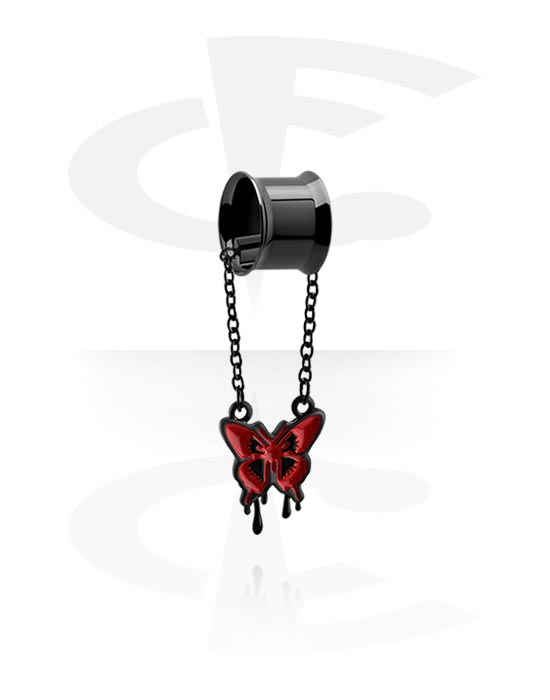 Dobbeltformet tunnel (kirurgisk stål, svart, skinnende finish) med sommerfuglcharm