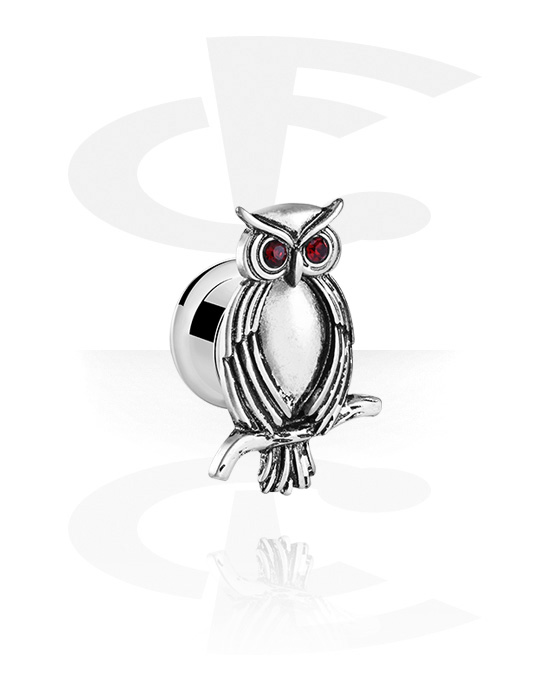 Dobbeltformet tunnel (kirurgisk stål, sølv, skinnende finish) med uglefeste og krystallsteiner