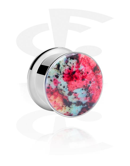 Dobbeltformet tunnel (kirurgisk stål, sølv, skinnende finish) med fargerik hette