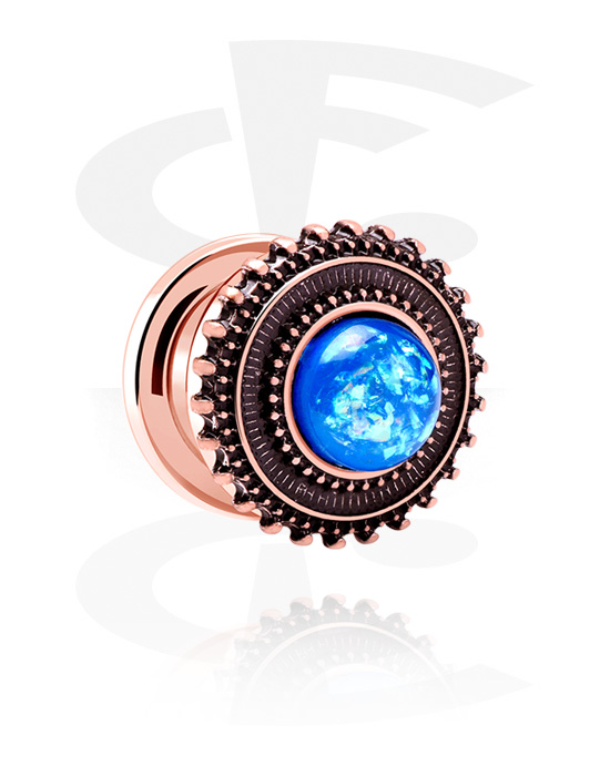 Skrutunnel (kirurgisk stål, rosegull, skinnende finish) med vintage design og fargerik hette