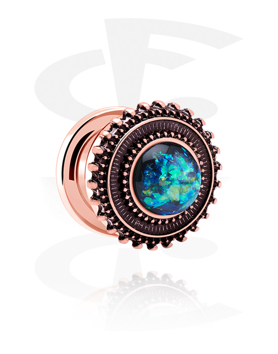 Skrutunnel (kirurgisk stål, rosegull, skinnende finish) med vintage design og fargerik hette