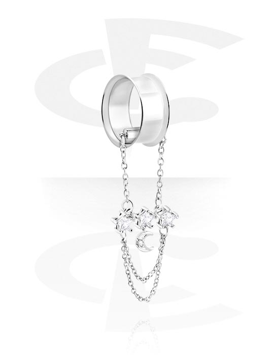 Dobbeltformet tunnel (kirurgisk stål, sølv, skinnende finish) med Crescent og krystallsteiner