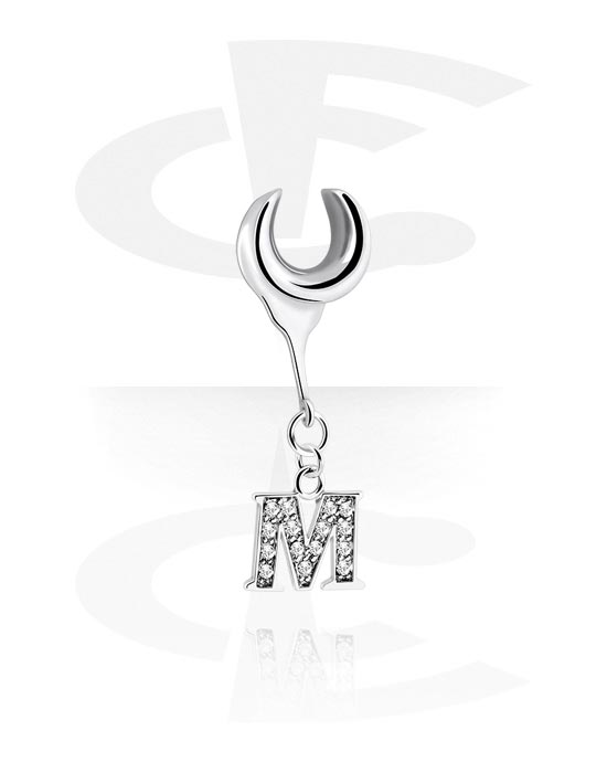 Skrutunnel (kirurgisk stål, sølv, skinnende finish) med charm med bokstaven "M" og krystallsteiner