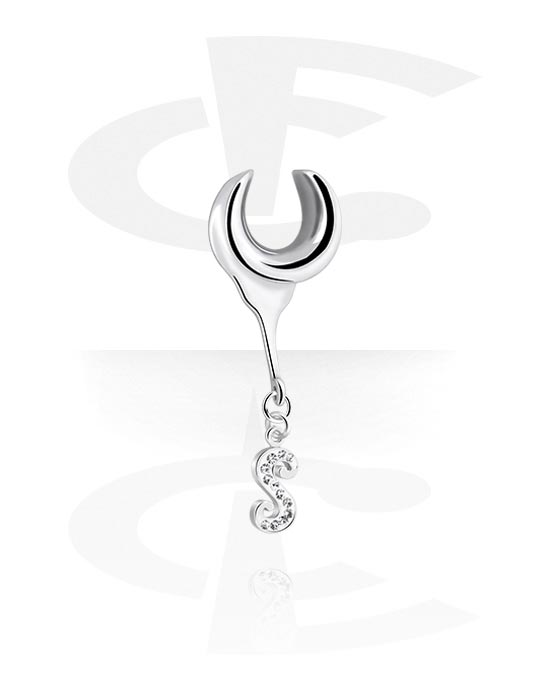 Halvtunnel (stål, sølv, skinnende finish) med charm med bokstaven "S" og krystallsteiner