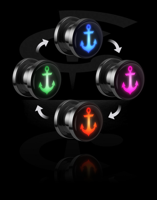 Skrutunnel (kirurgisk stål, sølv, skinnende finish) med LED-feste og ankerdesign