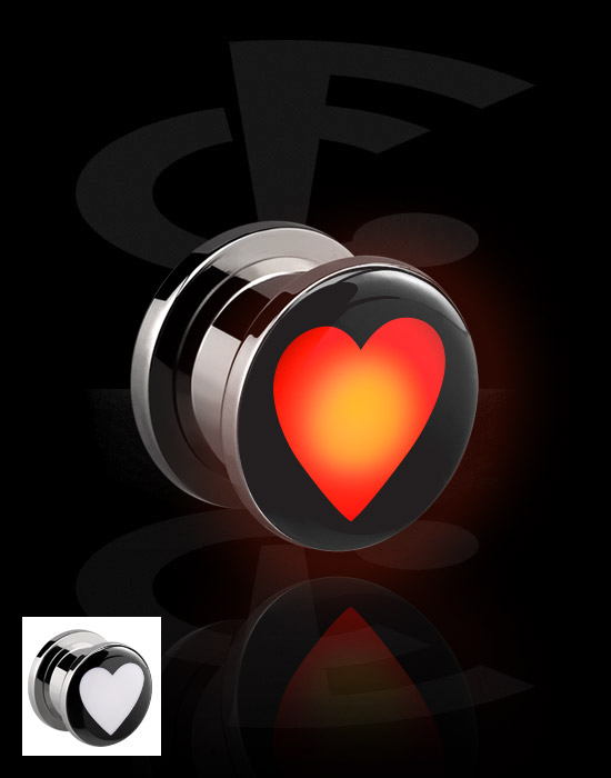 Skrutunnel (kirurgisk stål, sølv, skinnende finish) med LED-feste og hjertedesign