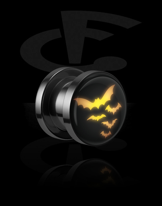 Skrutunnel (kirurgisk stål, svart, skinnende finish) med LED-feste og flaggermusdesign