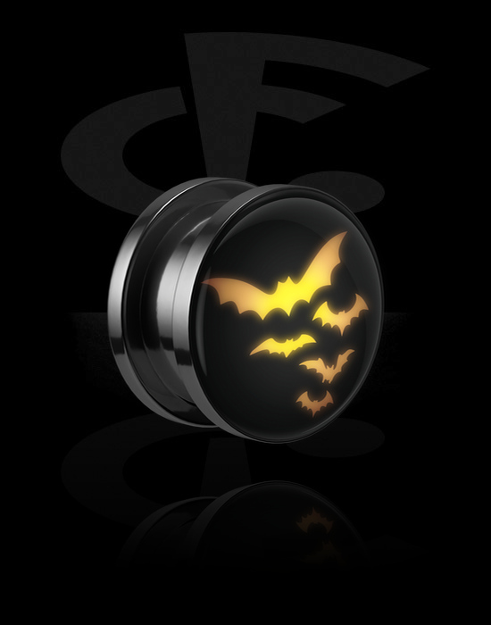 Skrutunnel (kirurgisk stål, svart, skinnende finish) med LED-feste og flaggermusdesign