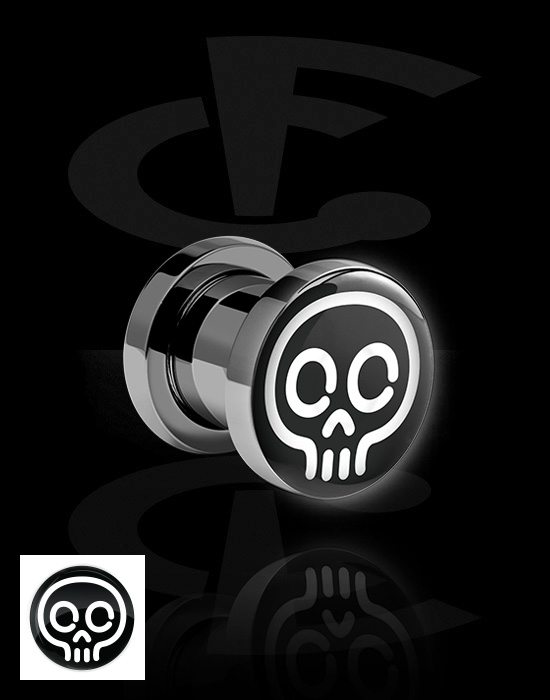 Skrutunnel (kirurgisk stål, svart, skinnende finish) med LED-feste og hodeskalledesign