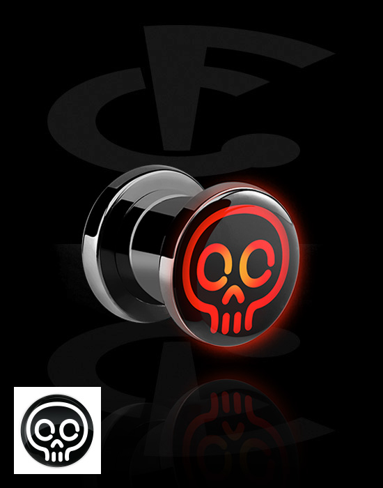 Skrutunnel (kirurgisk stål, svart, skinnende finish) med LED-feste og hodeskalledesign