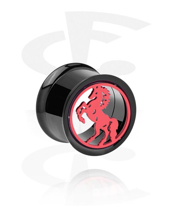 Dobbeltformet tunnel (kirurgisk stål, svart, skinnende finish) med hestedesign