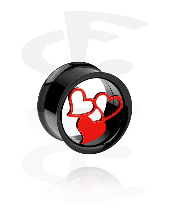 Dobbeltformet tunnel (kirurgisk stål, svart, skinnende finish) med hjertedesign