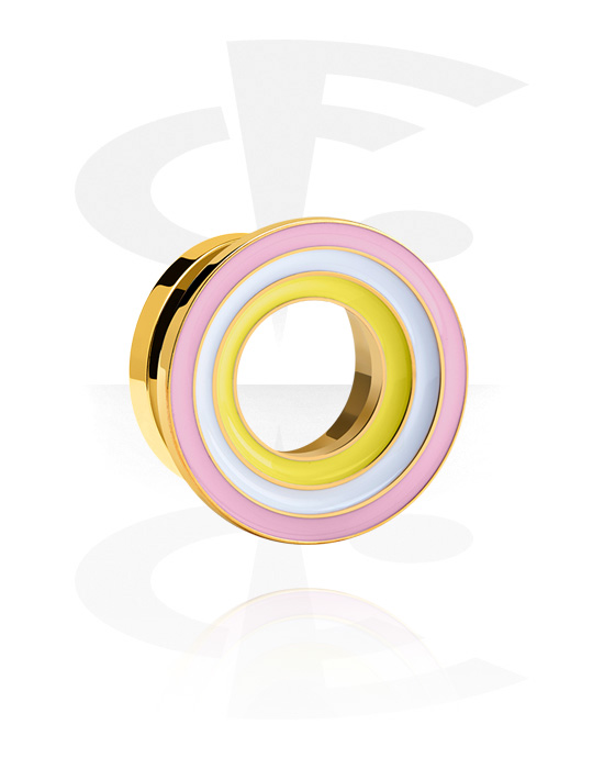 Skrutunnel (kirurgisk stål, gull, skinnende finish) med feste i pastellfarger