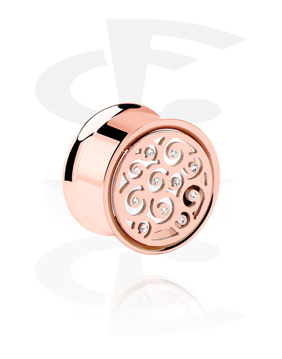 Dobbeltformet tunnel (kirurgisk stål, rosegull, skinnende finish) med krystallsteiner