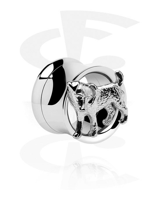 Dobbeltformet tunnel (kirurgisk stål, sølv, skinnende finish) med hundedesign