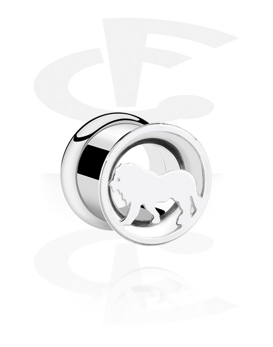 Dobbeltformet tunnel (kirurgisk stål, sølv, skinnende finish) med løvedesign