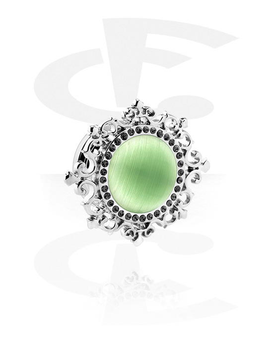 Skrutunnel (kirurgisk stål, sølv, skinnende finish) med hette i ulike farger og krystallsteiner