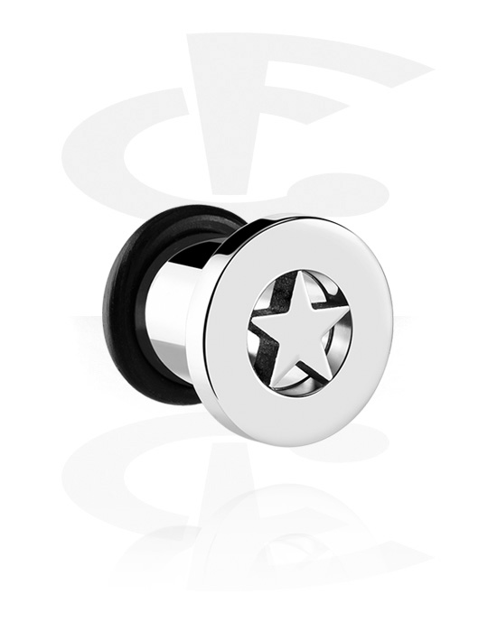 Enkeltformet tunnel (kirurgisk stål, sølv, skinnende finish) med stjernedesign og O-ring