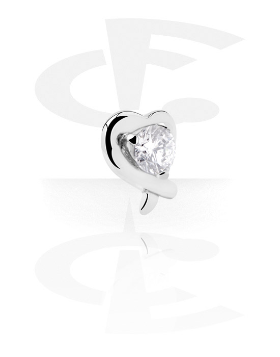 Feste for innvendig gjengede pinner (kirurgisk stål, sølv, skinnende finish) med hjertedesign og krystallstein